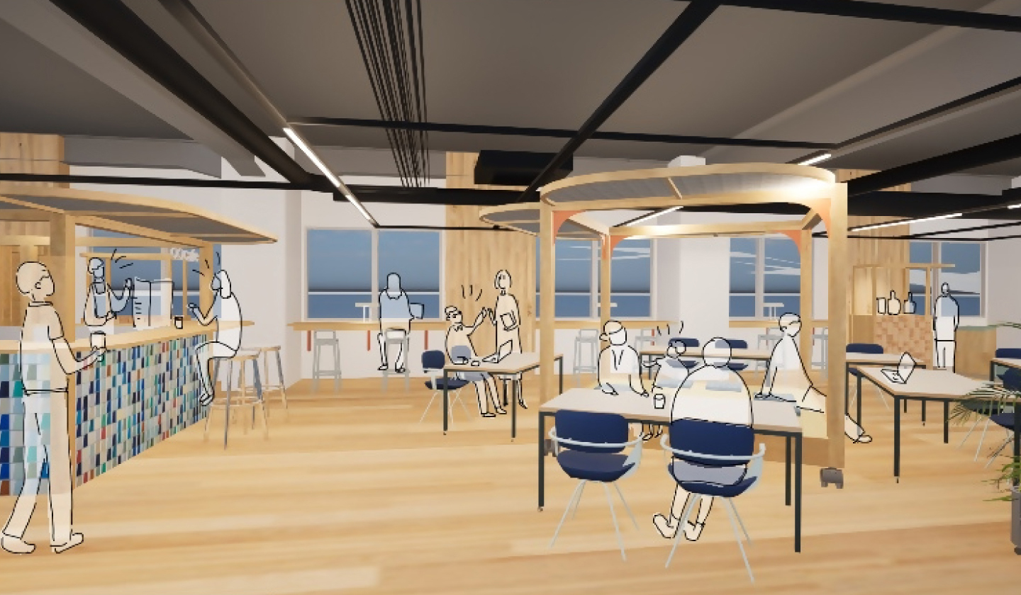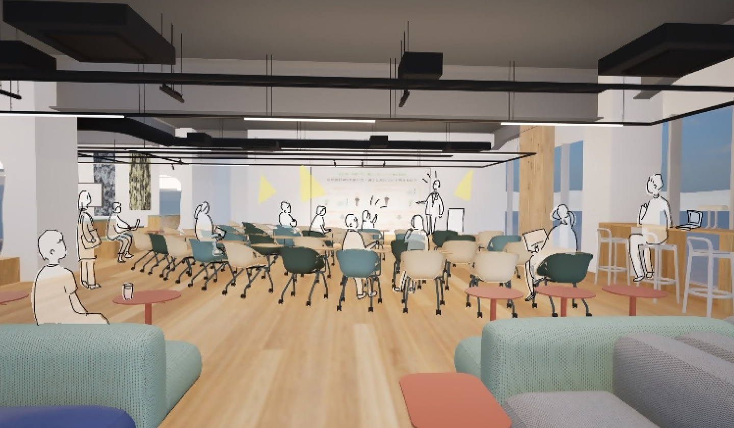 - 「E:N BASE」という名称には、多様な主体が出会い、つながることで、共創の“エン”(縁・円)を生み出し、広げていく拠点でありたいとの思いを込めています。「E」は愛媛の頭文字、そして「N」は「Next(次代)」や「Node(接点)」などのさまざまな可能性を含み、これらをつなぐコロン(:)は、“つながり”の象徴です。ロゴは、愛媛のイメージや前向きさを感じる色を基調に、形や大きさの異なる円が重なり合って新たな円をかたちづくる姿を描き、 共創を通じて多様な主体が新しい価値を生み出す様子を表現しています。